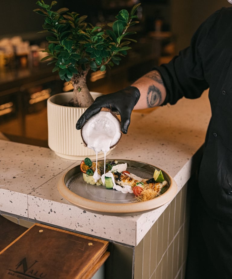 Nalu Restaurant's chef creates innovative dishes blending local and global flavors with fresh ingredients and artistic flair.